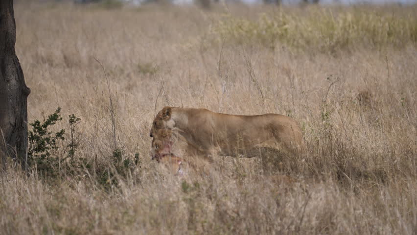 Lioness killed a pregnant Gazelle and bring it to the pride