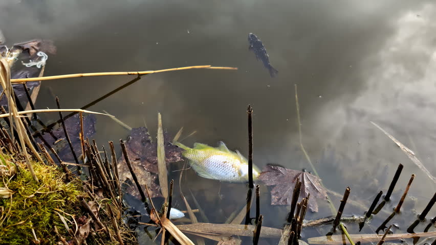 Pollution and other toxins kill fish in a pond