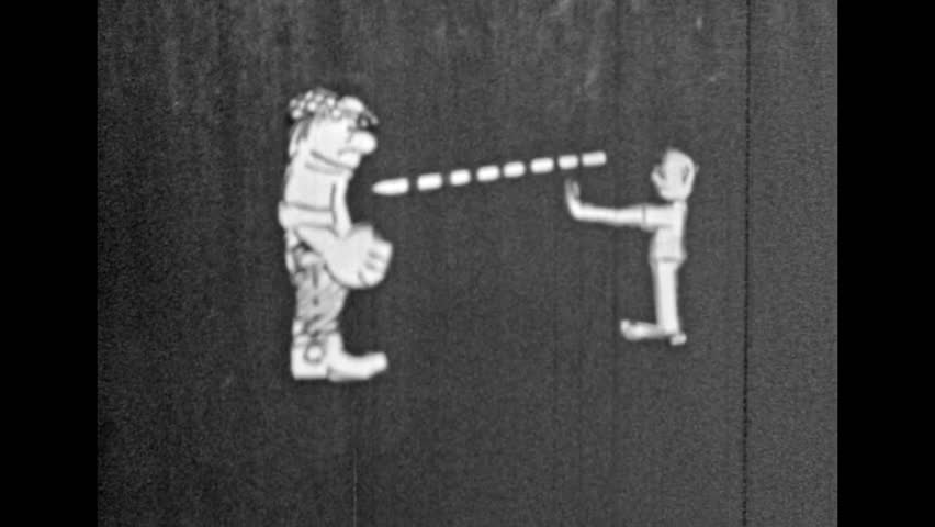 Archive film, kill, slay with glance, with thought power concept, funny animation