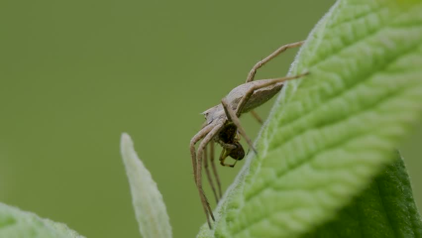 Nursery Web Spider Predating Another Spider