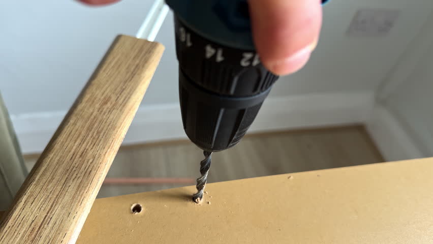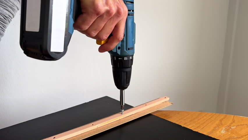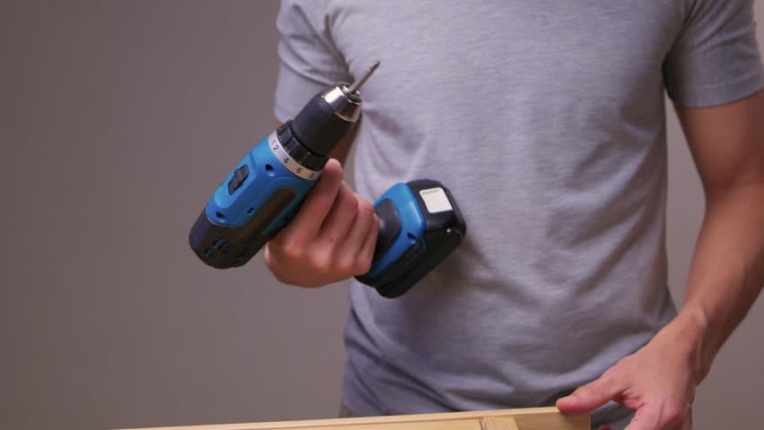 Cordless Power Drill Drive Screw Into Join Wood T-Bar, Home DIY Repair and Renovation