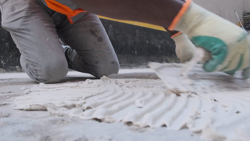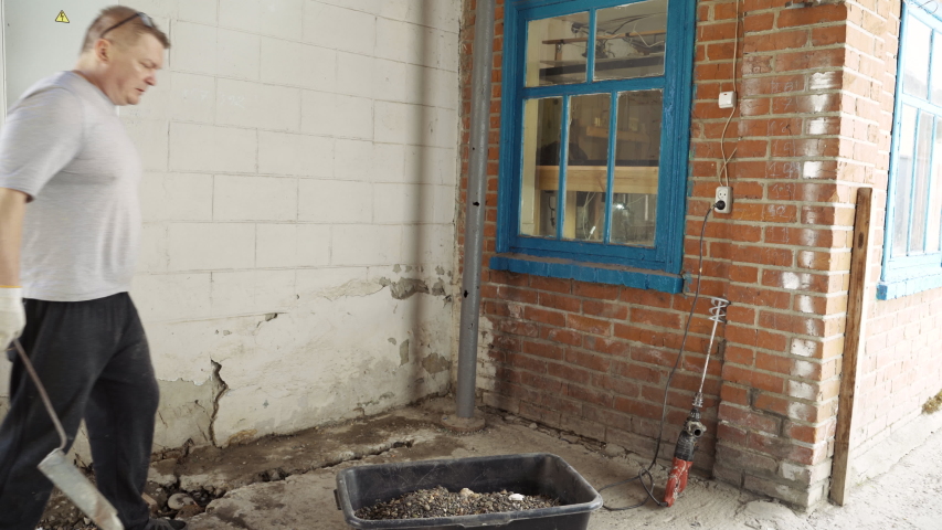 Male Worker Builder Guest Worker Mixes Cement Mortar
