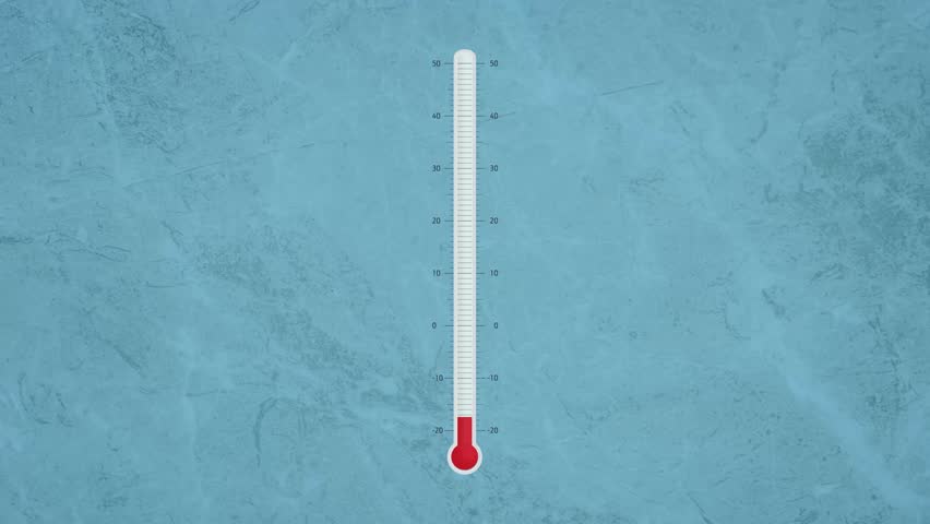 A Celsius degrees thermometer animation showing different temperatures from below zero to hot fifty