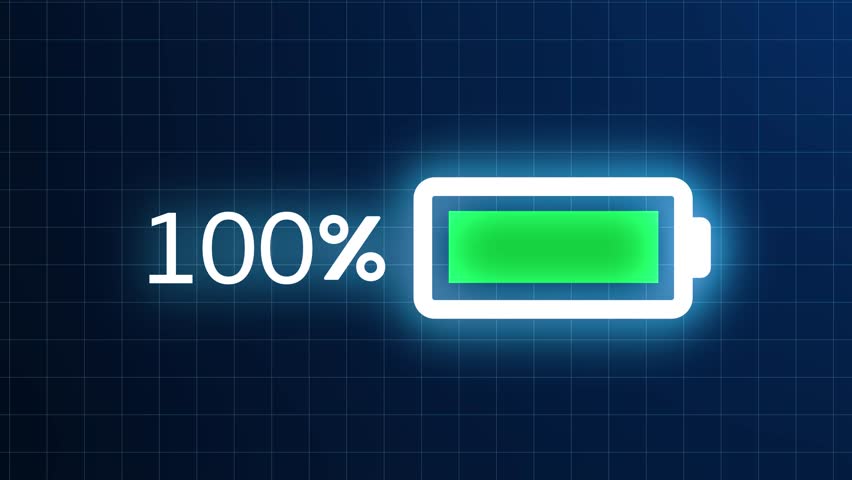 Graphic Animation of Floating Battery on the digital grid are being drain or discharge from 100 to 0 percent or empty, 4k 2160p uhd footage