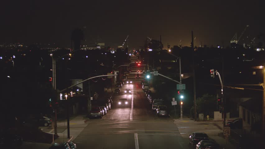 Night to morning time lapse of a busy street near the San Diego shipyards