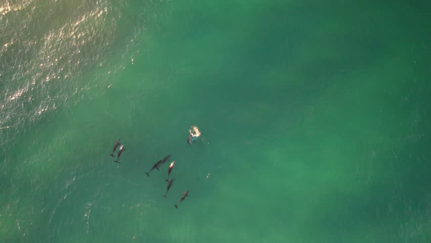 Group Of Dolphins Swimming In The Blue Sea In Northern Rivers, Byron Bay, NSW, Australia