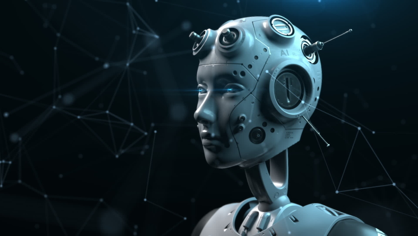 the robot filmed in three quarters observes about what is happening