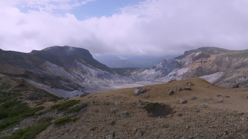 標高1700mの安達太良山は、福島県にある活火山で、万葉集に詠われた日本最北の山。 Mount Adatara, at 1,700 meters above sea level, is a dormant volcano in Fukushima and the northernmost mountain in Japan, as described in the "Manyoshu"