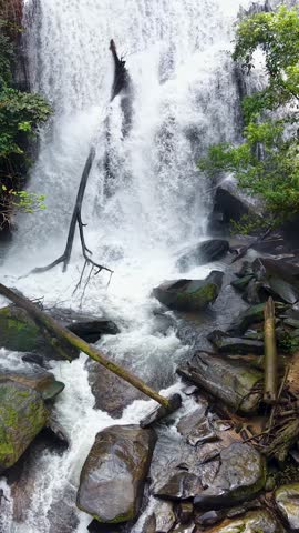 Aerial footage of the majestic Sirithan Waterfall in Chiang Mai, Thailand