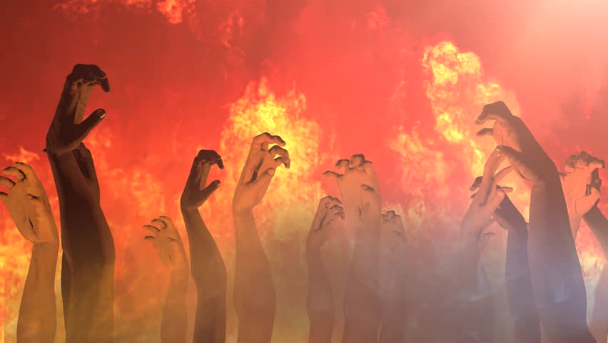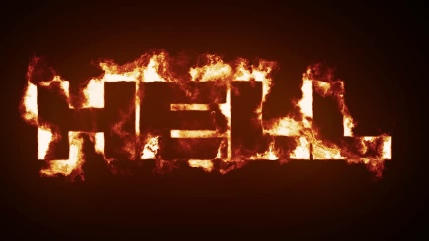 Fiery Flames Creating the Word Hell in a Dark Atmosphere with Intense Energy