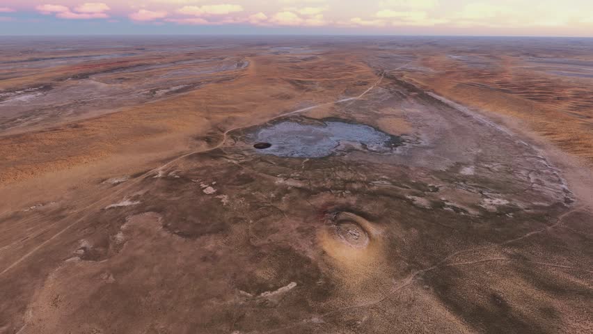 3D - Sunrise aerial view of Darvaza Gas Crater - Door to Hell in Derweze