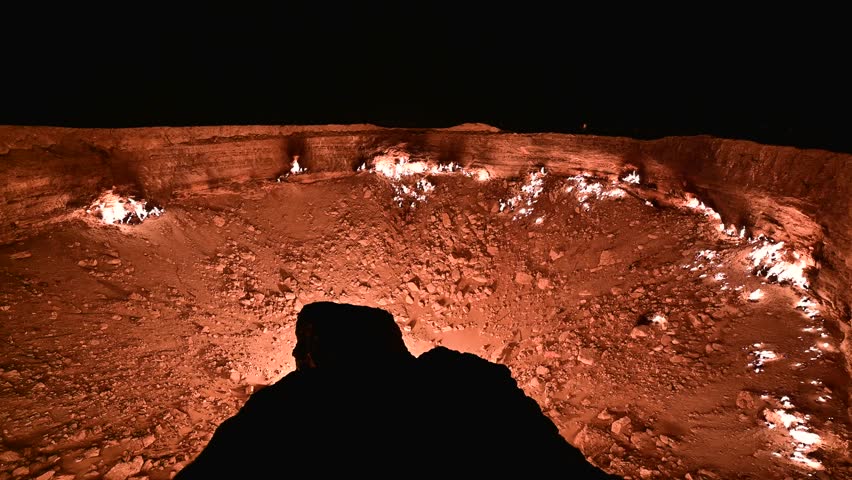 Flames in the Darvaza Gas Crater in Turkmenistan