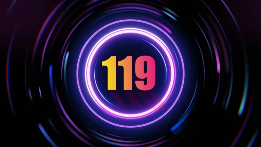 Number one hundred nineteen is displayed inside a glowing neon circle against a dark backdrop creating a futuristic and dynamic visual effect suitable for technology themes or abstract digital art