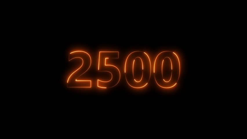 A dynamic Glowing neon text 2500 number countdown timer animation