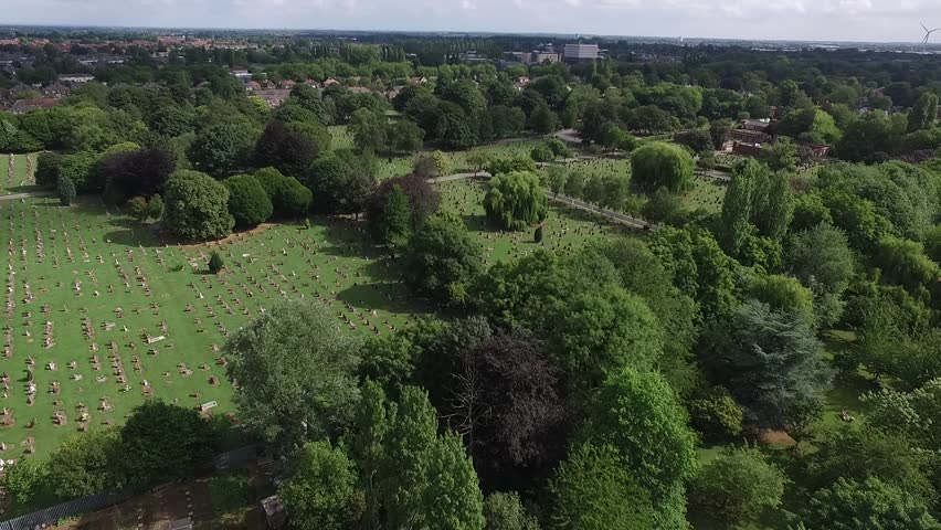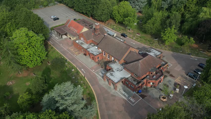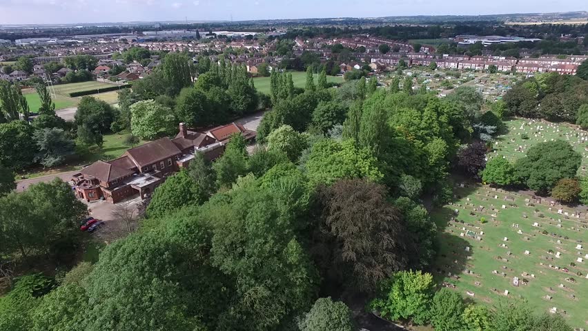 aerial view of Chanterlands Avenue Crematorium Chapel and memorial garden, Kingston upon Hull