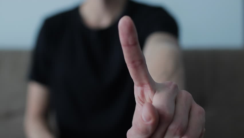 Man waving his index finger from side to side, showing a gesture of denial, refusal, and disagreement