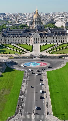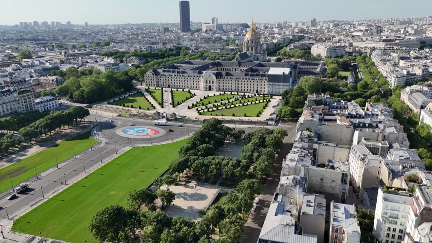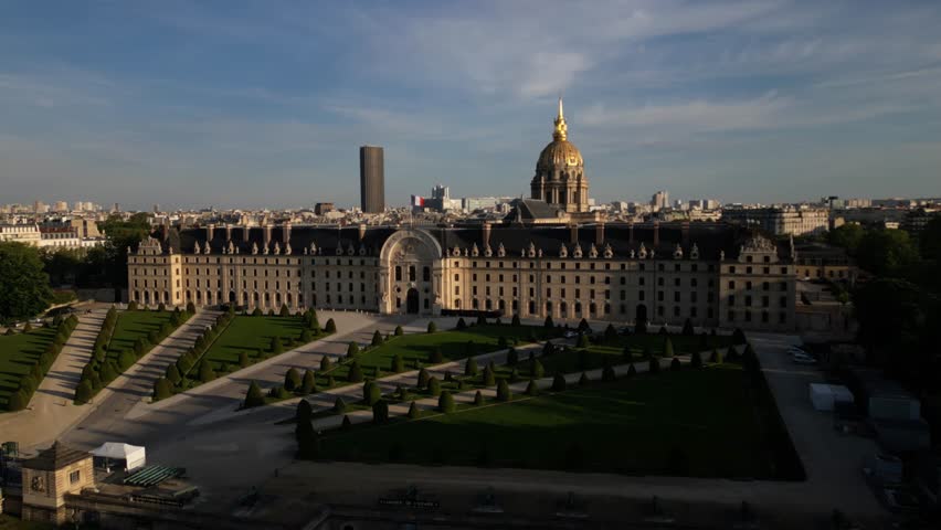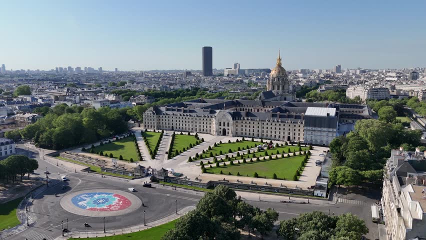 Drone shot of Hotel des Invalides (House of the Invalids) in Paris, France