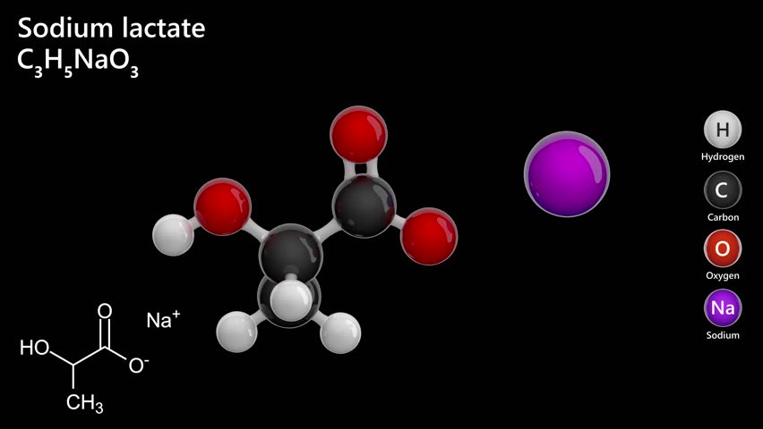 Sodium lactate rotating molecular structure, 3d model of molecule, e325, looped video