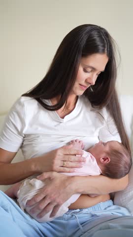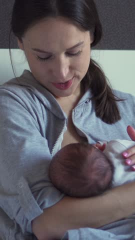 Close up of mother breastfeeding newborn baby peacefully showing nurturing bond and maternal love
