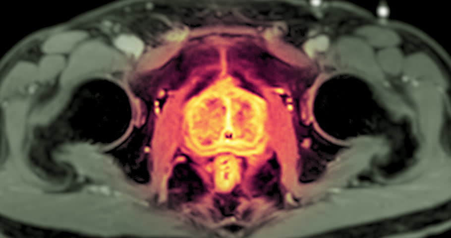 MRI scan reveals an enlarged prostate gland, a possible indicator of prostate cancer